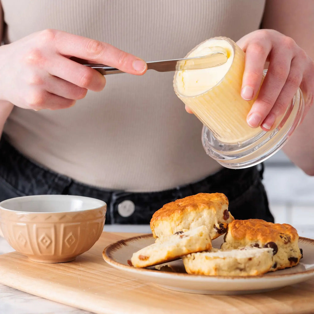 Enjoy perfectly soft, spreadable butter with the Kilner Glass Butter Crock, a simple and traditional way to keep butter fresh at room temperature. Holding up to 200mL, it works by creating an airtight seal with a layer of cold water, keeping your butter in ideal condition without refrigeration. With its clear glass design and classic Kilner styling, it looks just as good on the dining table as it does on the kitchen benchtop.